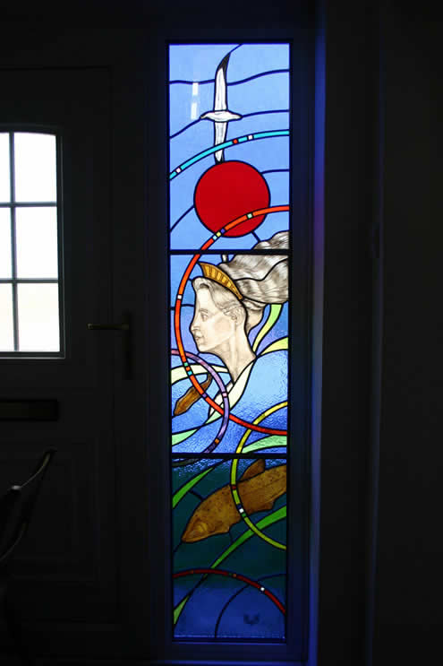 Figurehead House The Figurehead in this design looks out over the salt marshes at Cley. Here the sea is ever present, so the theme of the figurehead and its associations with sea voyages seemed a fitting subject for this location. The ocean wandering Albatross and the returning Salmon are included as motifs with which to evoke something of that sense of unspoken promise of renewal experienced in contact with sea. |