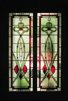 Commissions in domestic stained glass are usually undertaken with reference to the existing interior design. The colours used here were chosen to work with the internal décor of the house. The house itself is late victorian with modern fittings. In creating these stained glass panels I set out with two objectives. Firstly I wished to suggest a sense of formal elegance